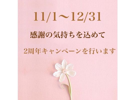 2021/11/30いつもプライベートサロンplaisirをご利用頂き ありがとうございます♪ 何度もお知らせしてきましたが、12/1で2周年を迎えました^^ このコロナ禍でも沢山の方... -